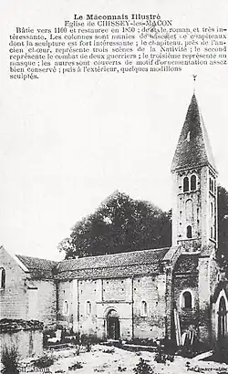 - ↑ « Les chapiteaux de Chissey-lès-Mâcon », article de Colette Chanay paru dans la revue « Images de Saône-et-Loire » n° 51 (automne 1982), page 3 à 6.