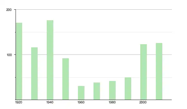 | 1930 | 116 | ▼ −32,16 % | |
