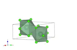 structure cristalline du chlorure d'actinium. L'actinium est situé ici au centre du polyèdre de coordination formé par les ions chlorures