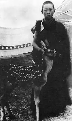 - ↑ (en) The Tibetan People's Princess, China Rights Forum, No 4, 2006 : « From that time on, my dad strictly obeyed the tenets of Tibetan Buddhism and never again wore a monk’s cassock, exchanging it for the attire of Tibetan nobility. Even when he participated in religious ceremonies, he never tried to conceal the fact that he had a wife and family.” »
