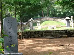 Lorsque Yi Seong-gye retourné à la capitale, Choe Young mit en place une lutte vaillante au palais, mais a été submergé par les forces de Yi. Choe a été vaincu, capturé, et banni à Goyang et a ensuite été décapité au nom du gouvernement contrôlé par Yi Seong-gye. Avant l'exécution, Choe a été célèbre pour avoir prédit qu'en raison de sa disparition injuste l'herbe ne pousserait jamais sur sa tombe. Fait intéressant, l'herbe n'a jamais poussé sur sa tombe jusqu'en 1976 et il était connu comme jeokbun (적분), ce qui signifie tombe rouge, à cause de la terre rouge.
