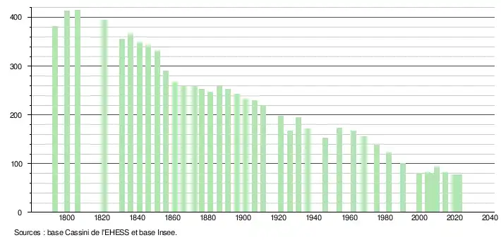 - ↑ Fiches Insee - Populations de référence de la commune pour les années 2006, 2007, 2008, 2009, 2010, 2011, 2012, 2013, 2014, 2015, 2016, 2017, 2018, 2019, 2020, 2021 et 2022.