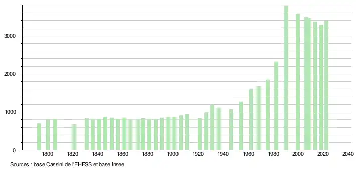 - ↑ Fiches Insee - Populations de référence de la commune pour les années 2006, 2007, 2008, 2009, 2010, 2011, 2012, 2013, 2014, 2015, 2016, 2017, 2018, 2019, 2020, 2021 et 2022.