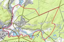 L'occupation des sols de la commune, telle qu'elle ressort de la base de données européenne d'occupation biophysique des sols Corine Land Cover (CLC), est marquée par l'importance des forêts et milieux semi-naturels (63,2 % en 2018), une proportion sensiblement équivalente à celle de 1990 (63,4 %). La répartition détaillée en 2018 est la suivante : forêts (57,8 %), terres arables (15,4 %), zones urbanisées (12,9 %), milieux à végétation arbustive et/ou herbacée (5,5 %), eaux continentales[Note 5] (5,4 %), prairies (1,7 %), zones industrielles ou commerciales et réseaux de communication (1,3 %), zones agricoles hétérogènes (0,1 %)[29]. L'évolution de l'occupation des sols de la commune et de ses infrastructures peut être observée sur les différentes représentations cartographiques du territoire : la carte de Cassini (XVIIIe siècle), la carte d'état-major (1820-1866) et les cartes ou photos aériennes de l'IGN pour la période actuelle (1950 à aujourd'hui)[Carte 3].