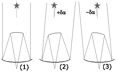 Un des inconvénients de la modulation du fond, ainsi que cela apparaît sur la figure, est que cette procédure échantillonne le fond thermique sur des parcours différents de celui que la lumière suit lorsqu'elle provient de l'étoile : ce ne sont en effet pas les mêmes zones du miroir primaire sur lesquelles le faisceau se réfléchit lors des trois phases de la modulation. Or le miroir primaire participe aussi à l'émission thermique du train optique ; contraindre le faisceau à frapper des zones différentes du primaire introduit donc un biais dans l'estimation du fond thermique. Avec les notations précédentes, ce biais vaut . On raffine donc cette méthode en pratiquant le nodding, ou balancement.