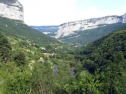 Au niveau du petit lac de retenue de Choranche, la Bourne prend la direction de l'ouest et entaille ce pli qu'elle éventre en affouillant les couches marneuses de l'Hauterivien, jusqu'à atteindre les calcaires du Fontanil. La vallée s'ouvre ensuite assez largement du fait de l'éloignement des falaises de ses deux rives[2].