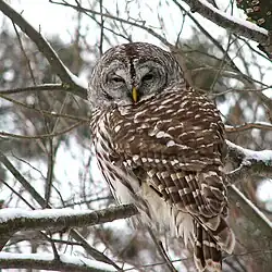 - ↑ Barred Owl Factsheet, Lee and Rose Warner Nature Center, 2008