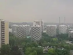 Dix tours rondes de 14 étages et un immeuble annulaire de 6 étages constituent l'élément essentiel de ce grand ensemble. Leur forme, semblable à un chou-fleur en raison des balcons[5], donne son nom, ou plutôt son surnom, à ce quartier. Ces balcons, dans l'idée de l'architecte, étaient destinés à être végétalisés, ce qui aurait modifié l'aspect extérieur des immeubles support de jardins, au gré des saisons ; mais ces jardinières ont été refusées par le promoteur[6].