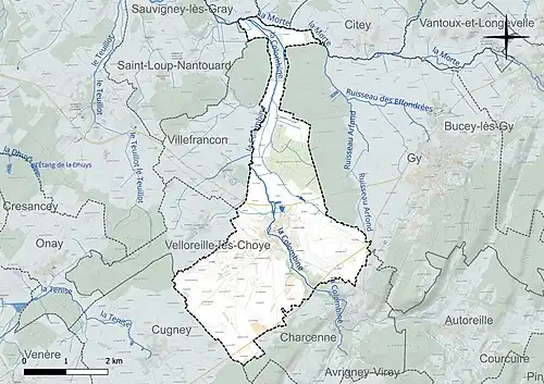 Les communes limitrophes sont Angirey, Charcenne, Citey, Cugney, Gy, Saint-Loup-Nantouard, Sauvigney-lès-Gray, Velloreille-lès-Choye et Villefrancon.