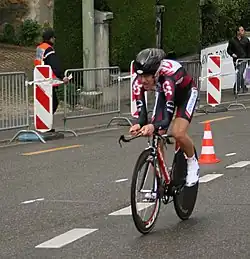 Durant un contre-la-montre, sur le Tour de Romandie 2011.