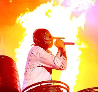 Il laissait parfois voir ses cheveux comme lors de l'événement "A day of the Gusano 2015" à Mexico (Mexique). Il était le numéro trois. Il s'occupait également du chant dans certaines chansons. C'était le comique du groupe, mais on dit aussi qu'en dépit de son apparence bizarre et de son comportement parfois déchaîné sur scène, il était un peu le « modérateur » du groupe et s'occupait souvent de tempérer les autres membres, notamment Shawn Crahan et Sid Wilson qui ne cessent de se battre lorsqu'ils sont sur scène. Dans son adolescence, son groupe préféré était Sepultura. Ses percussions sont constituées de plusieurs tambours et de grosses caisses[réf. nécessaire].