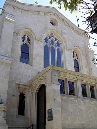 Trois architectes : William Curry Hillier, qui meurt en 1840 du typhus, James Wood Johns, remplacé par Matthew Habershon en 1843. La construction est financée par la London Society for Promoting Christianity Among the Jews.