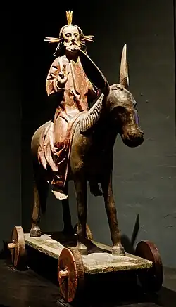 La tradition du Christ des Rameaux disparaît à l'époque moderne. Dans les pays germaniques, la Réforme protestante met fin aux processions, jugées trop proches de l'idolâtrie[5]. Dans les régions catholiques, elles perdent graduellement leur aspect religieux : des enfants peuvent par exemple monter l'âne moyennant finances. La pratique est interdite par l'Église catholique en 1782, et beaucoup d'exemplaires sont détruits par la population[5]. Elle reste attestée dans certaines localités au XIXe siècle, dont Oberammergau en Haute-Bavière, où elle répond à un vœu effectué par la ville lors d'une épidémie de peste en 1633 : l'acteur jouant le Christ monte un cheval vivant[5]. Une cinquantaine d'exemplaires seulement sont connus à la fin du XIXe siècle. Ils datent de la fin du Moyen Âge, sont tous anonymes, et proviennent pour la plupart du monde germanique : Alsace, Autriche, Allemagne du sud-ouest, Tyrol ou Suisse[6]. En possèdent dans leurs collections le Museum Schnütgen de Cologne, le Musée national du Moyen Âge et le musée du Louvre à Paris, le Germanisches Nationalmuseum de Nuremberg, le Metropolitan Museum of Art de New York, le musée de l'Œuvre Notre-Dame de Strasbourg ou encore le Landesmuseum Württemberg de Stuttgart.