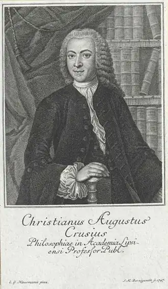 Christian August Crusius ( – ) est un philosophe et théologien protestant. Il est l'un des principaux adversaires du wolffianisme au XVIIIe siècle.