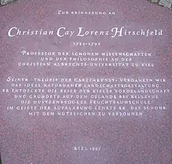 Christian Cay Lorenz Hirschfeld ( - ) est un concepteur allemand de l'art des jardins, de l'époque des Lumières, universitaire en philosophie et en histoire de l'art au service du Danemark, et écrivain remarquable pour plusieurs livres. Il a plaidé pour des jardins romantiques sensibles, dans le style paysager anglais.