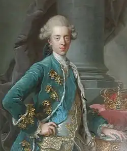 Portrait de Christian VII en costume de sacre (par Alexandre Roslin, vers 1772) | ||