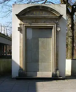 En 1971, le bâtiment de la Behringstrasse doit céder la place à la construction du nouveau tunnel de l'Elbe dans le cadre de l'A7 (1968-1975)[19]. La première porte, datant de 1721, a été installée sur le mur latéral de l'aile principale de la Behringstraße, après la démolition de ses anciens murs du XVIIIe siècle à la suite du déménagement de l'école en 1936, et reçoit son troisième emplacement lors du nouveau déménagement de l'école en 1971. Les deux ailes latérales restantes et aménagées depuis les années 1930 dans la Schulstraße ont été détruites avec leur extension wilhelminienne lors du bombardement de Hambourg en 1943[20]