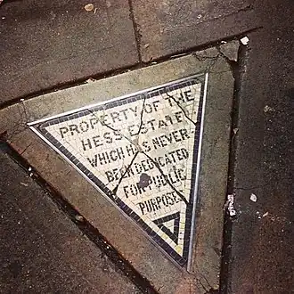 Sur un trottoir, à l'angle de la Septième Avenue figure le triangle de Hess, petite mosaïque de la taille d'une part de pizza ; cette ancienne propriété de la famille Hess est considérée comme la plus petite parcelle de la ville de New York.