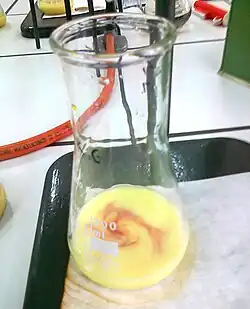 (K2CrO4) et du nitrate d'argent (AgNO3) dans l'eau purifiée – le chromate d'argent précipite hors du mélange réactionnel aqueux[3],[2],[4] :