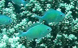 Chromis viridis, communément nommé Chromis bleu-vert[2], Demoiselle bleu-vert[3] ou Demoiselle verte, est une espèce de poissons marins de la famille des Pomacentridae[4].