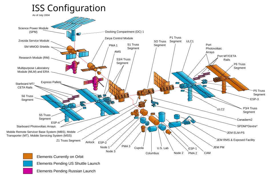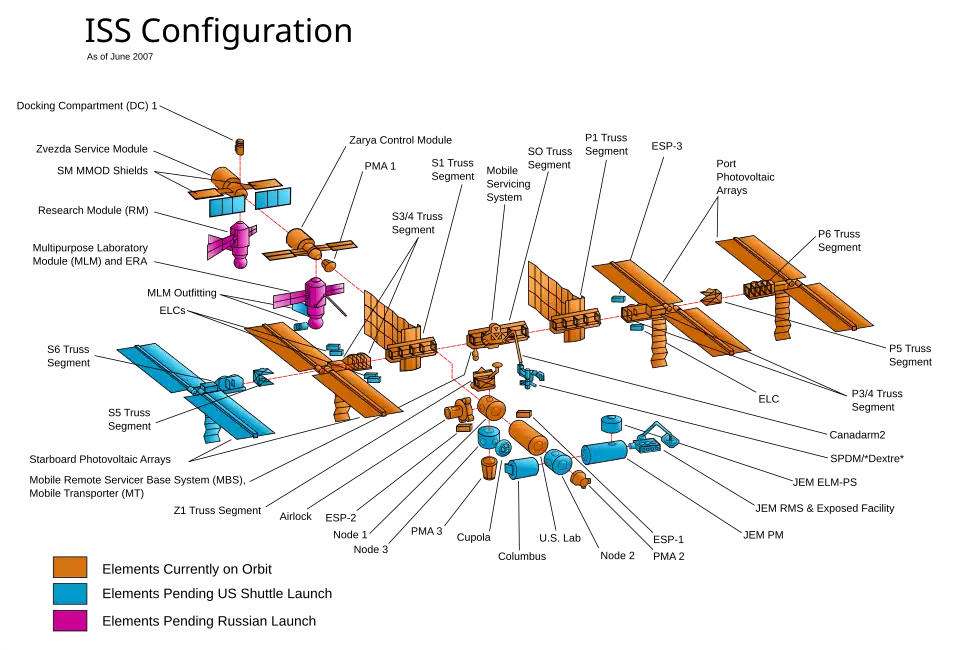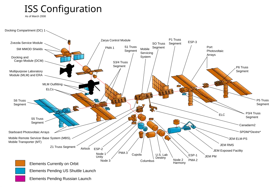 Le tableau suivant donne la chronologie d'assemblage des principaux composants de la Station spatiale internationale . Les composants en gras indiquent les éléments déjà en place sur la station.