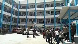 Les bâtiments de l'ONU sont parmi les rares lieux où les palestiniens ont normalement le droit de se réfugier lorsque l'armée israélienne bombarde leurs maisons. Un porte-parole de l'armée israélienne a déclaré que l'évacuation du lieu était demandée depuis quelques jours[75]. L'armée israélienne accuse le Hamas « de se servir des infrastructures civiles et de symboles internationaux comme boucliers humains ». Elle évoque aussi « la possibilité » d'un carnage causé par une roquette tirée par le Hamas. Selon des témoignages locaux, les chars israéliens ont tiré une vingtaine d'obus sur l'école[64]. Ces évènements conduisent le Conseil des droits de l'homme des Nations unies à ouvrir une enquête sur les crimes de guerre commis par Israël[76].