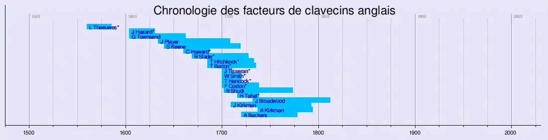 Vue d'ensemble des principaux facteurs de clavecins anglais.