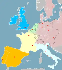 - Les facteurs réputés nés dans les États allemands qui ont émigré vers d'autres pays, sont présentés ici, mais rattachés à la couleur de la tradition de construction dans laquelle ils ont fait leur nom.