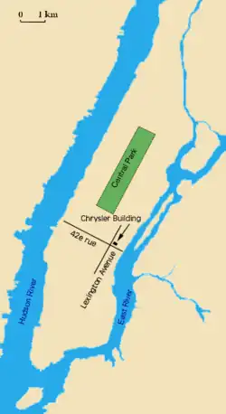 Le Chrysler Building (en français la « tour Chrysler »[3]) est un gratte-ciel de la ville de New York, aux États-Unis. Il se dresse à l'intersection de l'avenue Lexington et de la 42e rue, dans le quartier Midtown au sud de l'arrondissement de Manhattan. Grâce à sa flèche monumentale, il atteint la hauteur de 319 m (1 047 pi)[1], détrônant en 1930 la tour Eiffel et ses 300 m, pour être, à son tour, dépassé par l'Empire State Building en 1931.