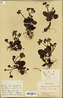 Le botaniste russe Carl Maximowicz de Saint Pétersbourg qui a fait des expéditions naturalistes en Sibérie, Chine et Japon a donné la première description de l’espèce sous le nom de Chrysosplenii Davidianum[1]。 Il s'est appuyé sur un spécimen récolté au Tibet oriental dans la principauté de Moupin par le père Armand David. Plus tard, Joseph Decaisne l’a reclassé sous le nom de Chrysosplenium davidianum.