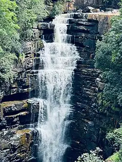 La chute de Kinkon mesure environ 80 mètres de hauteur. Elle coule toute l'année, mais elle est la plus belle en saison pluvieuse précisément entre Août et septembre, lorsqu'elle est alimentée par les eaux du fleuve. Elle occupe le fond de la vallée de Kokoulo[3].