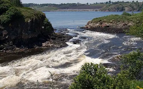 À cet endroit, un phénomène rare se produit quand les marées extrêmement hautes de la baie, d’une amplitude de 8,5 mètres[1], changent la direction de l'écoulement du fleuve sur quelques kilomètres dans un cycle de 12,5 heures[1]. Au plus fort de la marée, qu'elle soit montante ou descendante, la chute d'eau mesure alors 4,4 mètres[2]. Cette configuration fait de la cascade une chute d'eau côtière à marée descendante et un courant de marée à marée montante.
