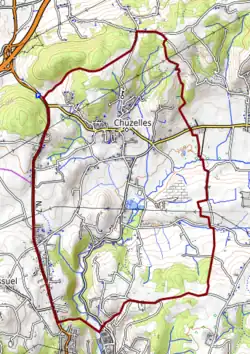 Chuzelles est une commune d'une superficie de 1 303 ha.