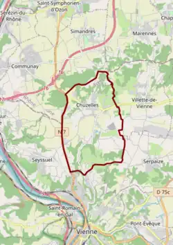 - ↑ « Orthodromie entre Chuzelles et Luzinay », sur fr.distance.to (consulté le ).