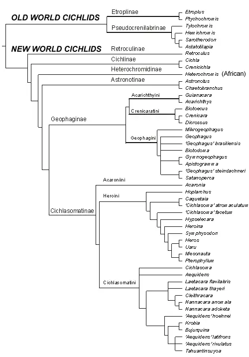Arbre phylogénétique des Cichlidés[réf. nécessaire].