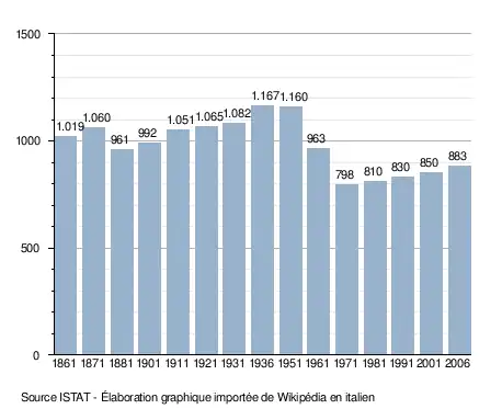 - ↑ (it) Popolazione residente e bilancio demografico sur le site de l'ISTAT.
