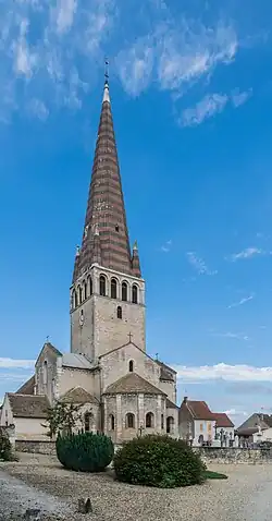 - l'église Notre-Dame-de-l'Assomption, édifice partiellement roman[22] disposant de vitraux (quinze verrières) signés du peintre verrier Joseph Besnard[23] ;