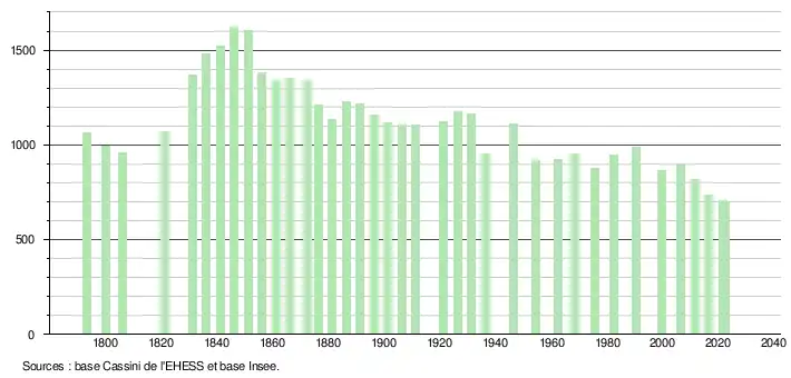- ↑ Fiches Insee - Populations de référence de la commune pour les années 2006, 2007, 2008, 2009, 2010, 2011, 2012, 2013, 2014, 2015, 2016, 2017, 2018, 2019, 2020, 2021 et 2022.