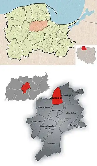 Cieszenie est une localité polonaise de la gmina rurale de Chmielno située dans le powiat de Kartuzy en voïvodie de Poméranie[1]. Elle se trouve à environ 7 km à l'ouest de Kartuzy et 35 km à l'ouest de la capitale régionale Gdańsk.