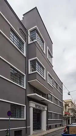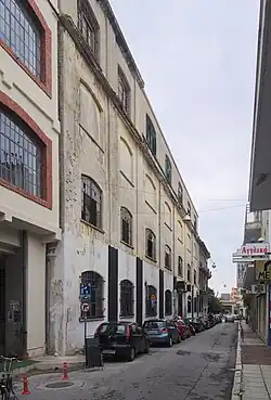 Le premier bâtiment de l'entreprise est situé à l'angle des rues Sokrátous (grec moderne : Οδός Σωκράτους) et Pávlou Melá (Οδός Παύλου Μελά). Il s'agit d'un bâtiment de deux étages avec un demi sous-sol, avec des murs en maçonnerie et un toit en bois. La façade, de forme simple et symétrique, est recouverte de plâtre. Au premier étage, au-dessus de l'entrée, figure une lucarne. En 1925, l'usine est agrandie d'avantage au niveau de la rue Pávlou Melá. Le nouveau bâtiment compte quatre étages et est constitué de murs porteurs de pierre à l'extérieur et de poutres et de dalles en béton armé à l'intérieur. La façade est simple avec de grandes ouvertures en arc, tandis que les fenêtres sont en métal. Les fenêtres au niveau du deuxième étage sont encastrées[3].