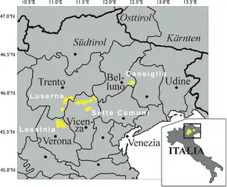 Le cimbre est issu du dialecte moyen haut-allemand bavarois, un dialecte de l'allemand, mais est isolé depuis plusieurs siècles de l’autre dialecte bavarois parlé dans le Nord de l'Italie, le mochène, ou de l’allemand tyrolien et carinthien parlé à Sappada, Sauris et Timau.