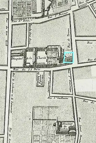 De 1604 à 1609, le cimetière Saint-Germain est alors de nouveau utilisé pour y enterrer des pestiférés protestants, avant d'être attribué à l’hôpital de la Charité.