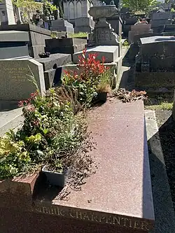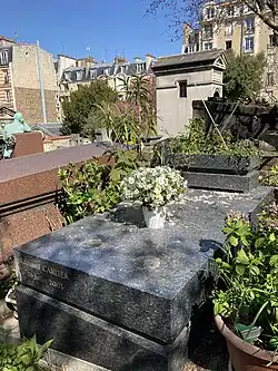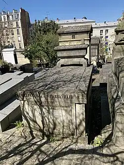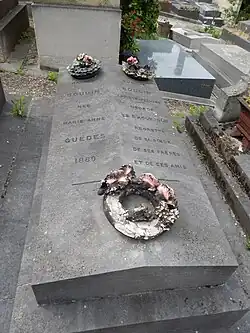 - ↑ dans une tombe appartenant à la famille de sa seconde épouse, les De Mirmont