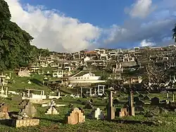 Panoramique du cimetière chinois de Tahiti vu de la route principale.