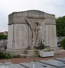 En 1920, un comité est créé pour l'érection d'un monument aux soldats morts pour la France. Le projet de Julien Mérot (sculpteur) est approuvé en 1921 et le monument érigé en 1922 avec le concours du marbrier Grillot[4]. C'est un monument de très grande taille : 4,10 m de haut, 4,80 m de longueur et 4,50 m de largeur. Le monument aux morts d'Antony représente une victoire affligée et témoigne du passé et des deuils qui ont frappé tant de familles antoniennes. Il avait été érigé, après la Première Guerre mondiale sur la place de la Mairie, et a été déplacé au cimetière, près du carré militaire, en 1999. Un second monument, copie en bronze faite à partir d'un moulage de la statue du monument d'origine, a été réalisé et érigé devant le nouvel hôtel de ville. L'inauguration a eu lieu le 8 mai 2000[5].