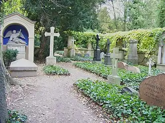 - (de) Cet article est partiellement ou en totalité issu de l’article de Wikipédia en allemand intitulé « Bornstedter Friedhof » (voir la liste des auteurs).