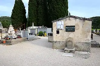 Ce petit cimetière méditerranéen du Luberon avec ses murets de pierres accueille la sépulture de deux écrivains d'adoption lourmarinoise[2]. Albert Camus, mort en 1960 dans un accident de voiture dans l'Yonne[3] et son épouse la pianiste Francine née Faure reposent sous deux parcelles d'iris et de romarin ombragées par un laurier-rose. La dépouille d'Henri Bosco mort en 1976 se trouve sous un simple dalle. Sa stèle montre des caractères grecs ésotériques signifiant que l'âme humaine passe par le cœur pour rejoindre le paradis[4].