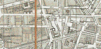 Par une petite ruelle, on pouvait accéder à ce petit cimetière dont l'entrée serait située aux actuels nos 8-10, rue de la Chaussée-d'Antin.