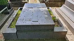 - ↑ La sépulture familiale (il est inhumé avec son père, sa mère et son fils Georges) était initialement située dans la 20e division (sous le boulevard périphérique). Elle a été restaurée et déplacée en .