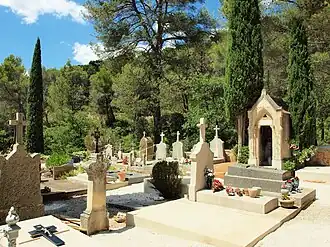 Ce petit cimetière en pente à l'extrémité du bourg est connu pour sa vue sur la campagne environnante. Il se trouve à proximité de la célèbre montagne Sainte-Victoire peinte par de nombreux artistes, ce qui explique la présence ici de tombes de quelques peintres et personnalités, comme l'historien Georges Duby[2]. Son cadre végétal et ses sépultures ombragées d'arbres méditerranéens sont appréciés des visiteurs. L'extension moderne du bas du cimetière est recouverte de tombes uniformes sans caractère contrairement à la partie haute avec des tombes de pierre calcaire.